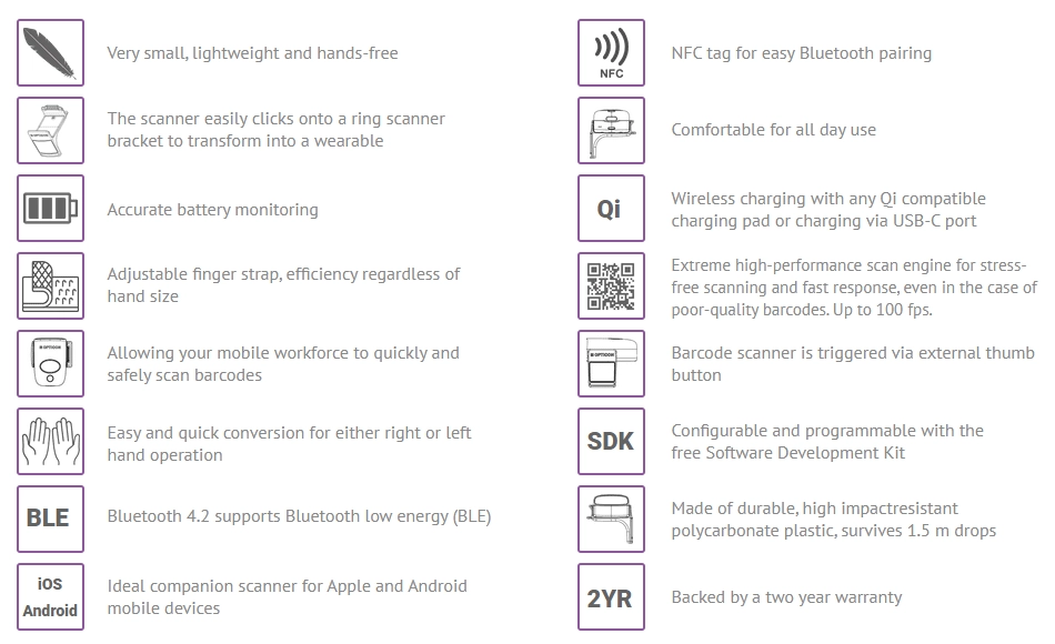 The RS-3000 can easily be clicked onto ring scanner bracket to transform it into wearable. Comfortable for all day use allowing your mobile workforce to quickly and safely scan barcodes.